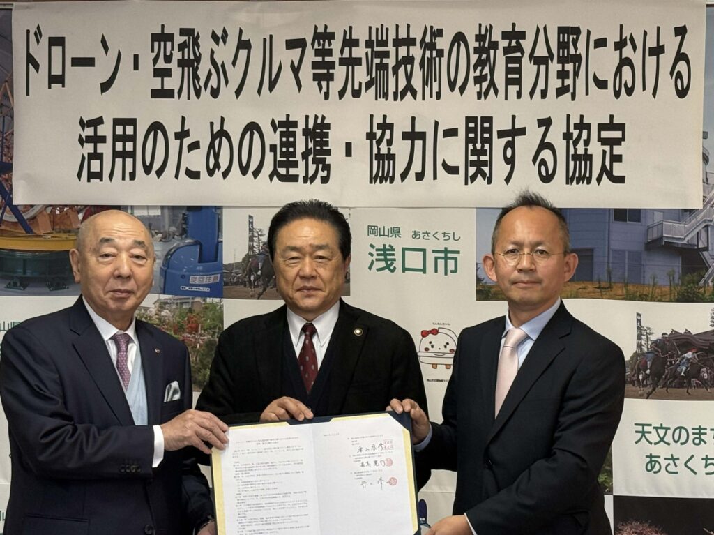 2026年1月22日、一般社団法人MASCは、浅口市(栗山康彦市長)および岡山県ドローン協会(森高寛行代表理事)との三者間で、教育・人材育成分野における協力協定を締結しました。