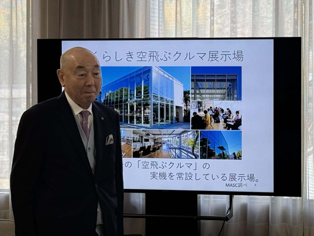 MASCからは、井上理事長が空飛ぶクルマに実際に搭乗した際の体験を踏まえたコメントを行い、あわせて坂ノ上事務局長からは、くらしき空飛ぶクルマ展示場の紹介や、子どもたちに向けた教育機会の提供について提案を行いました。